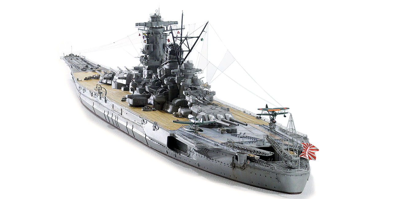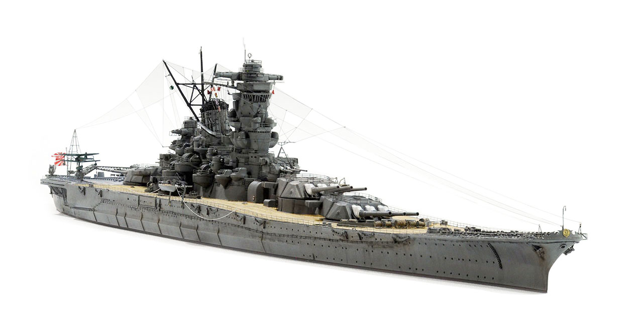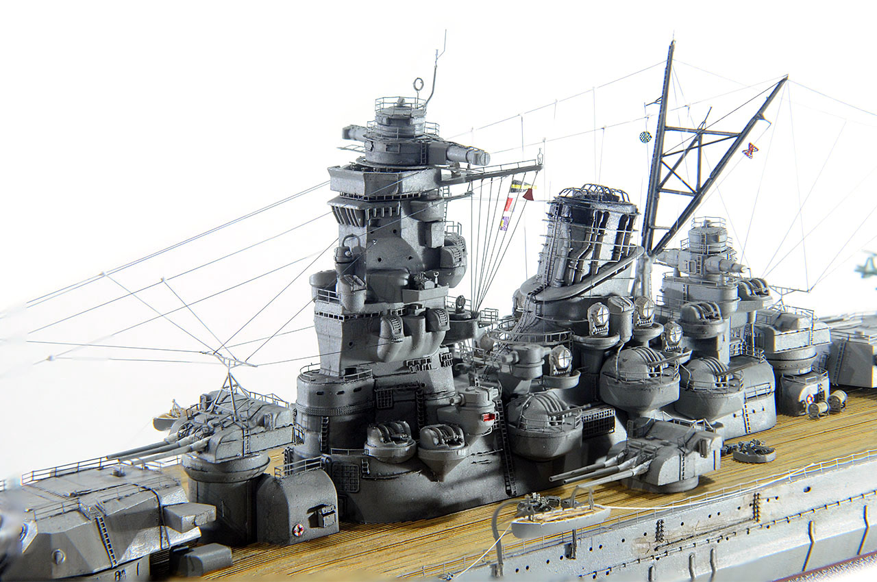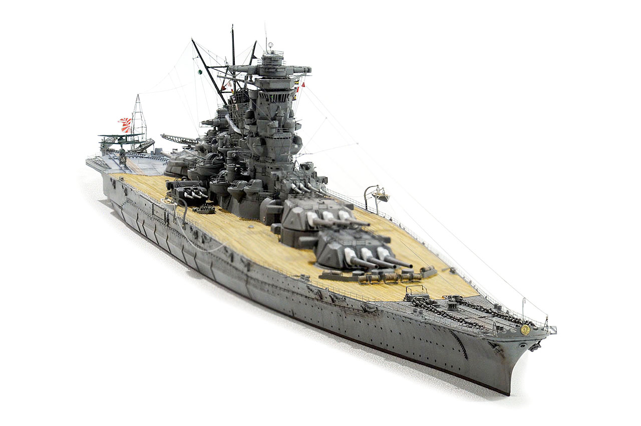 今回の作例設定年代以前ですが、山本五十六長官の棺を武蔵から移した際に、乗艦なさった駆逐艦秋雲元乗組員の方より、甲板はその時点ではまだ通常の木甲板であったコメント頂戴致しました。