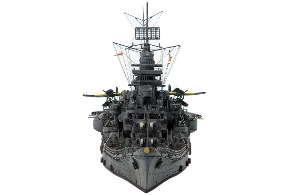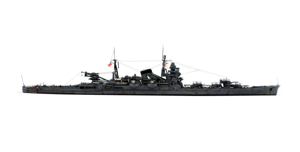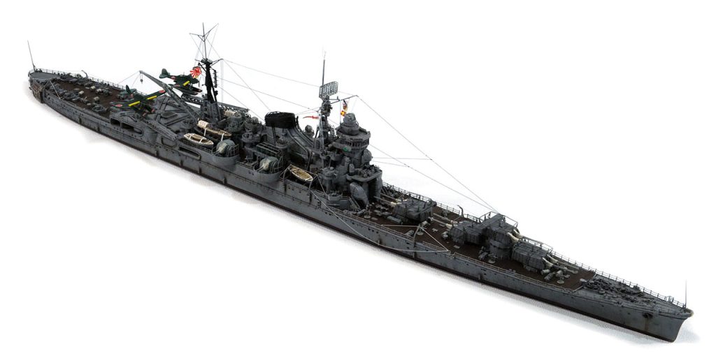 レイテ沖海戦で失った21号電探をそのまま用いるか、22号電探3基へ改造するのかの判断。キットは1945仕様だが、レーダーはレイテ沖海戦前の22号2基と21号1基のまま。