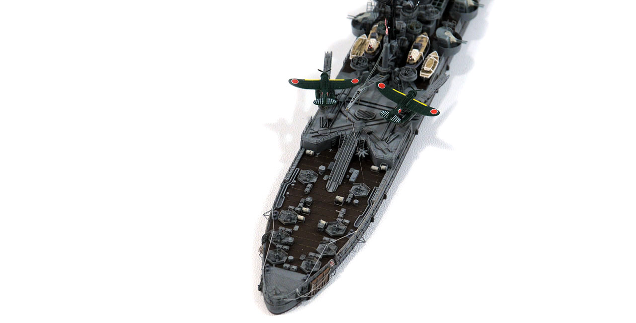レイテ沖海戦で失った21号電探をそのまま用いるか、22号電探3基へ改造するのかの判断。キットは1945仕様だが、レーダーはレイテ沖海戦前の22号2基と21号1基のまま。