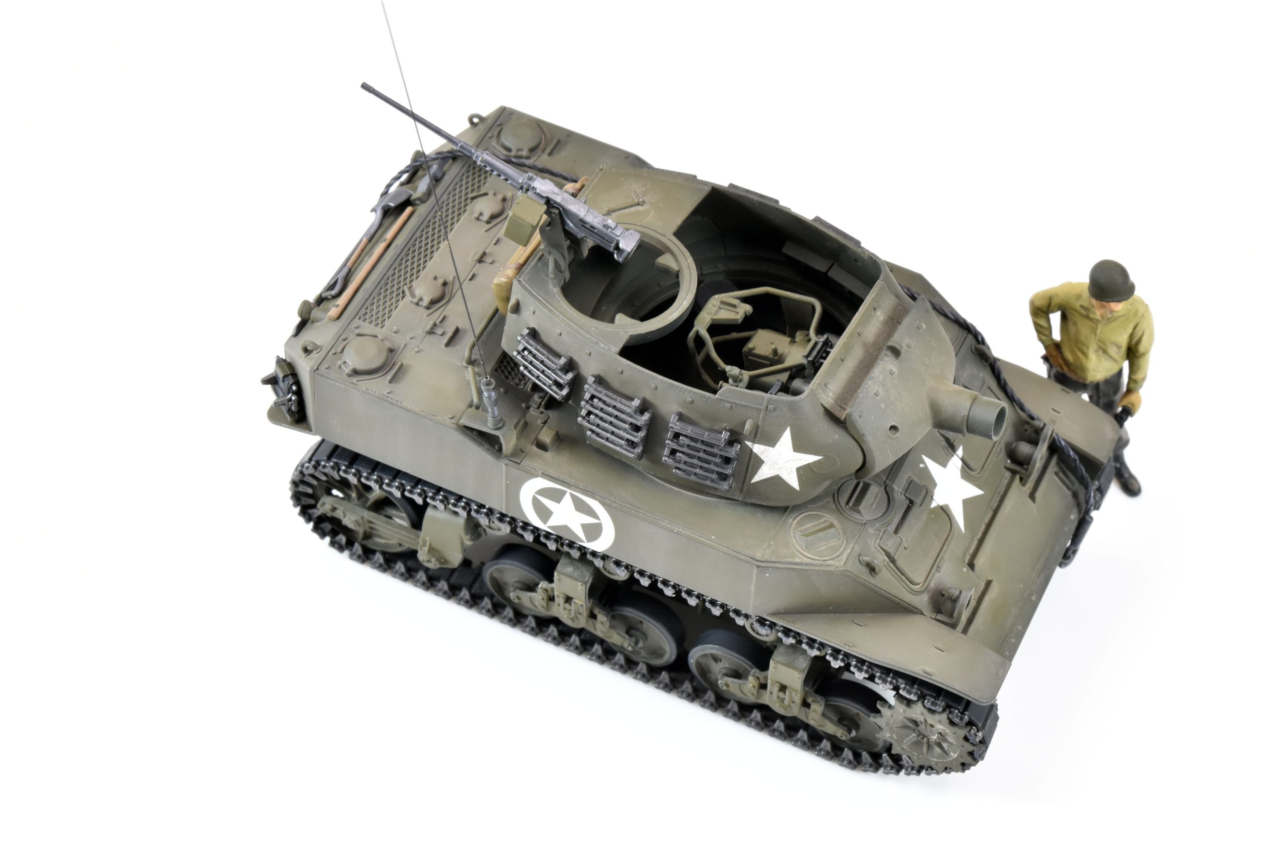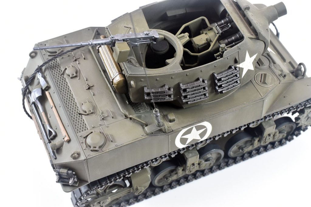 本車の兵装は、新規に開発されたオープントップの砲塔に口径75 mmのM2榴弾砲を装備したもので、のちには改修を加えた75 mm M3榴弾砲が装備された。