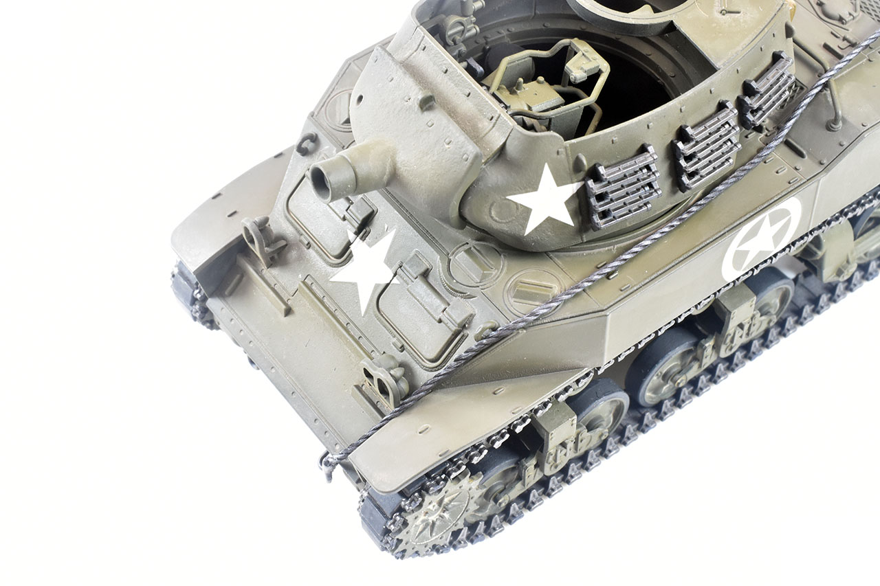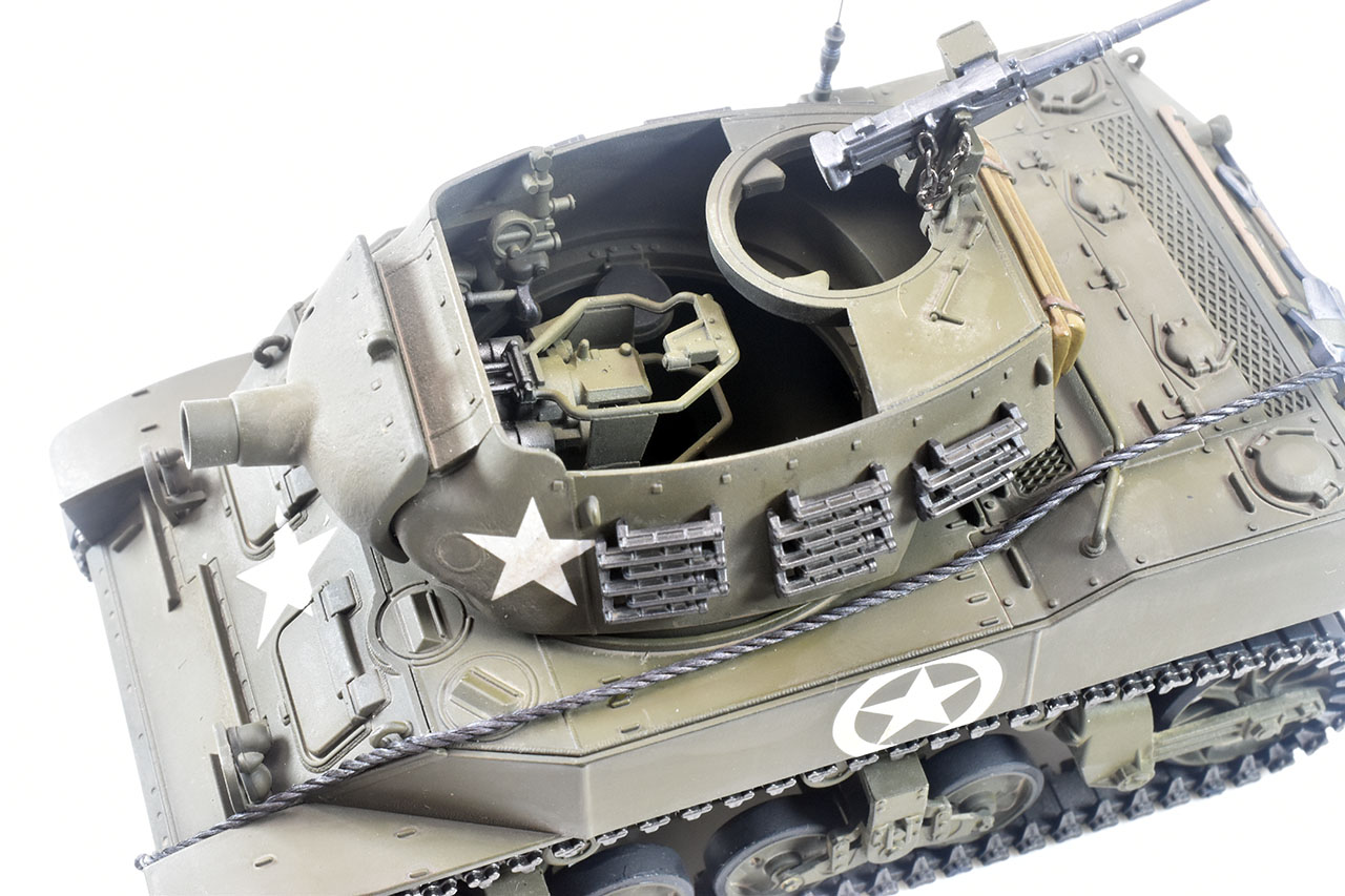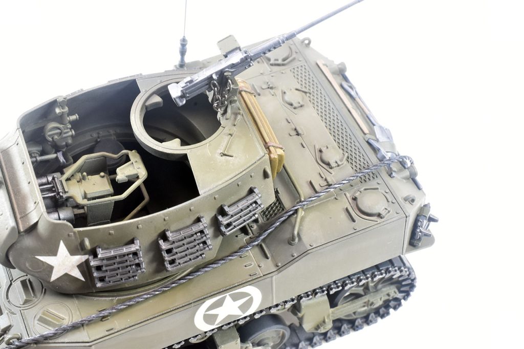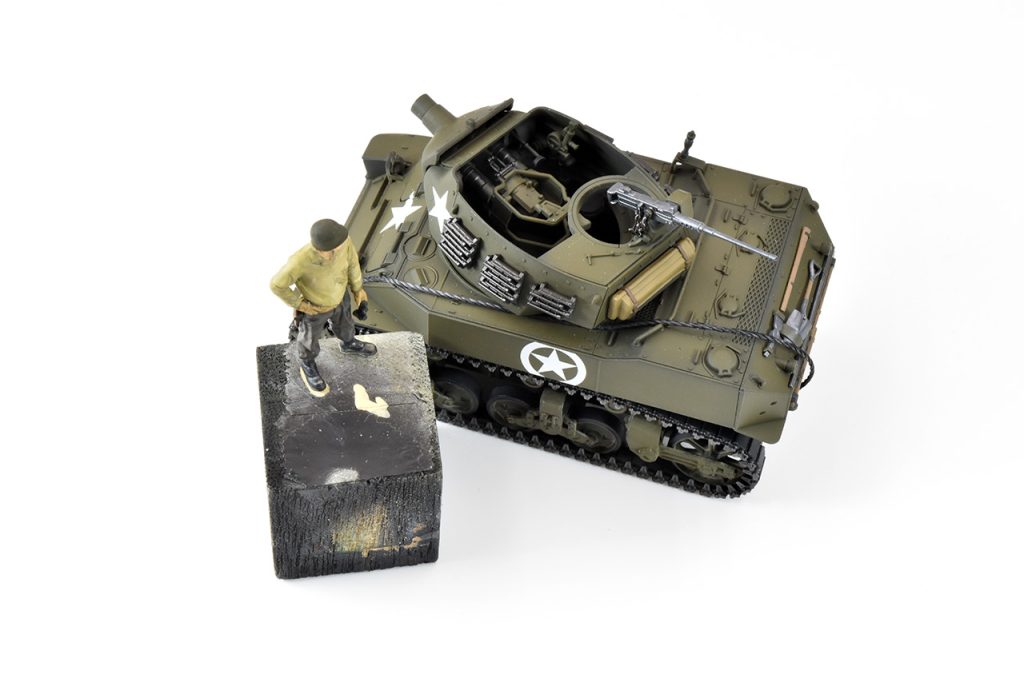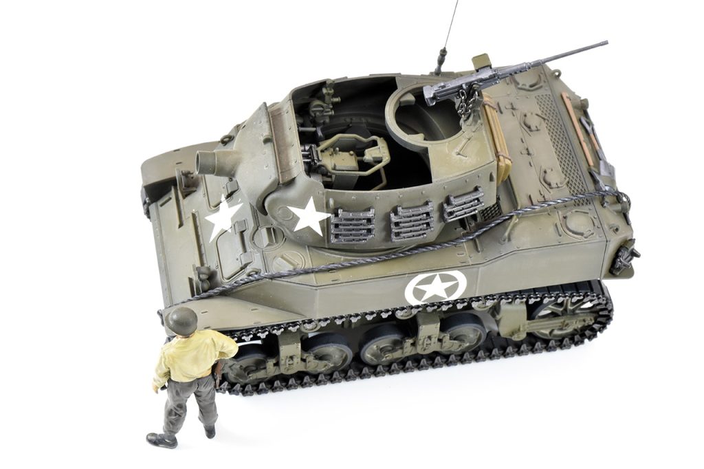 スコップ、機銃等小物類は金属光沢保護のためトップコート後に個別に塗装、設置しました。