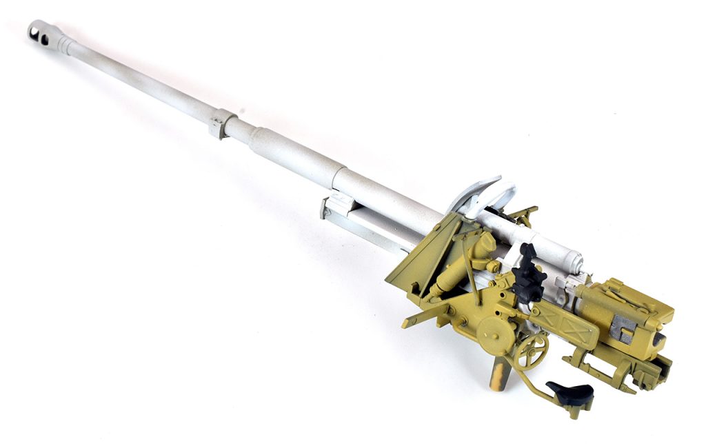 2024/1/24 砲身部です。細かな部品設定で回転盤、ハンドル、レバー、座アーム、装填部周り何一つ問題なくはまりました。塗分けは事前に計画的に考えておかないと大変そうです。実は、コレ、組んでから一度ばらしてます笑笑